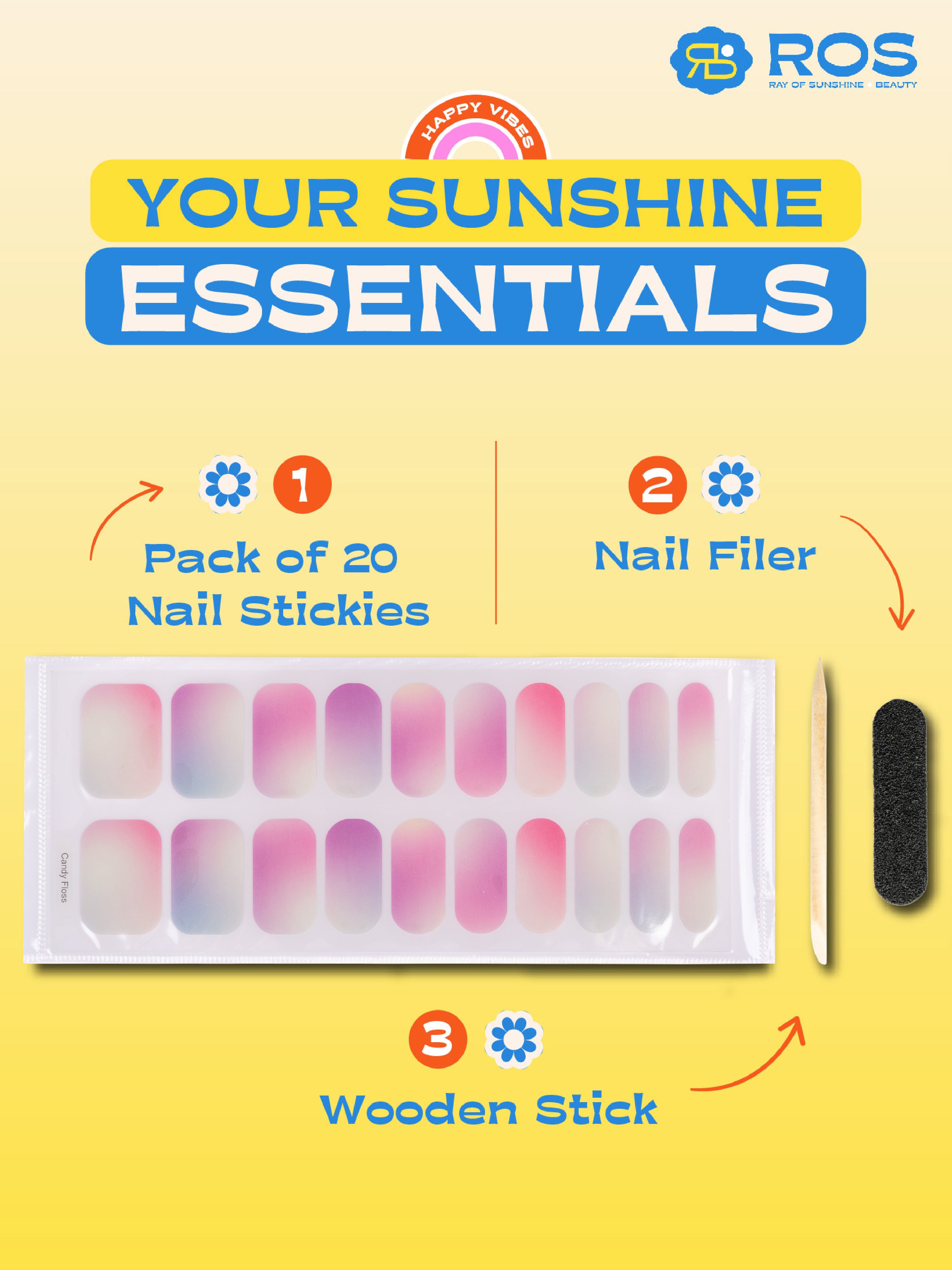No special tools necessary! Just peel, stick, and smooth the nail stickies onto your nails. Use a nail file to shape them and get that perfect vibe. 💅✨