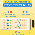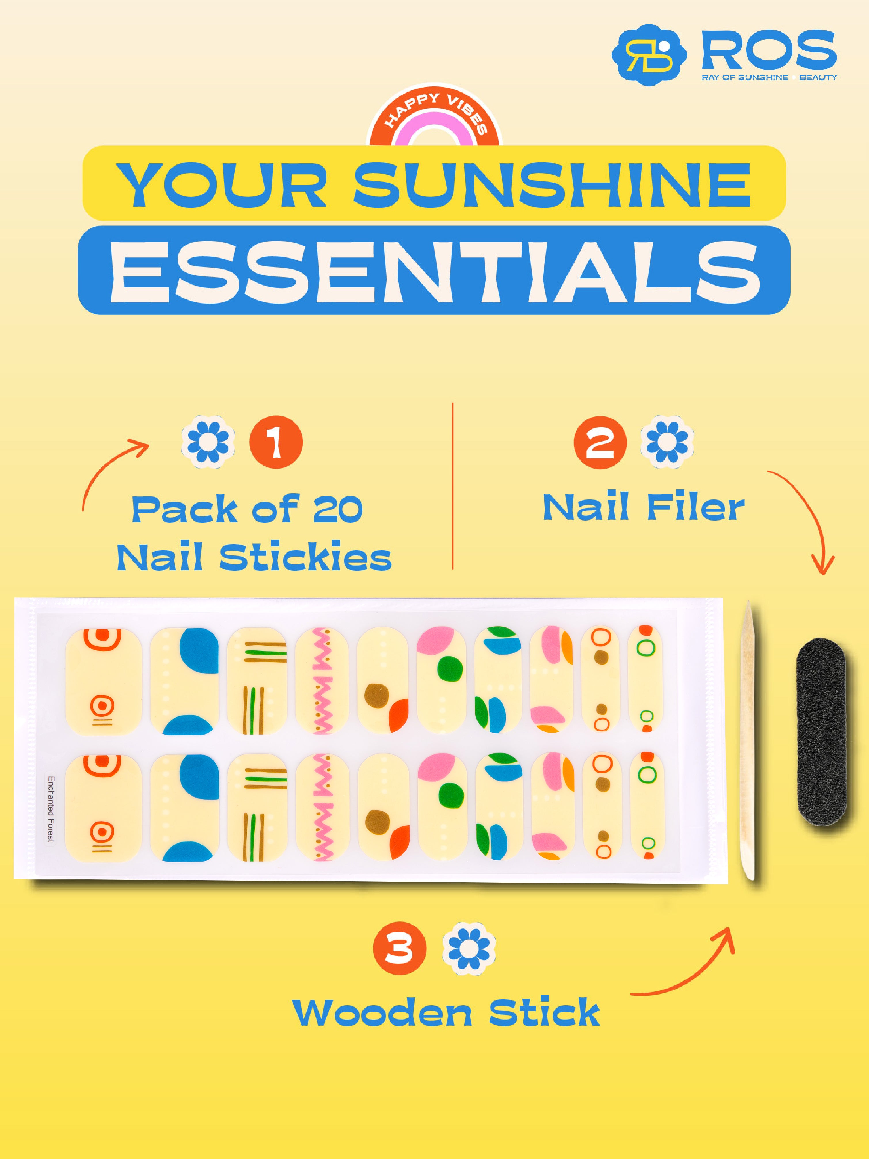 No special tools necessary! Just peel, stick, and smooth the nail stickies onto your nails. Use a nail file to shape them and get that perfect vibe. 💅✨