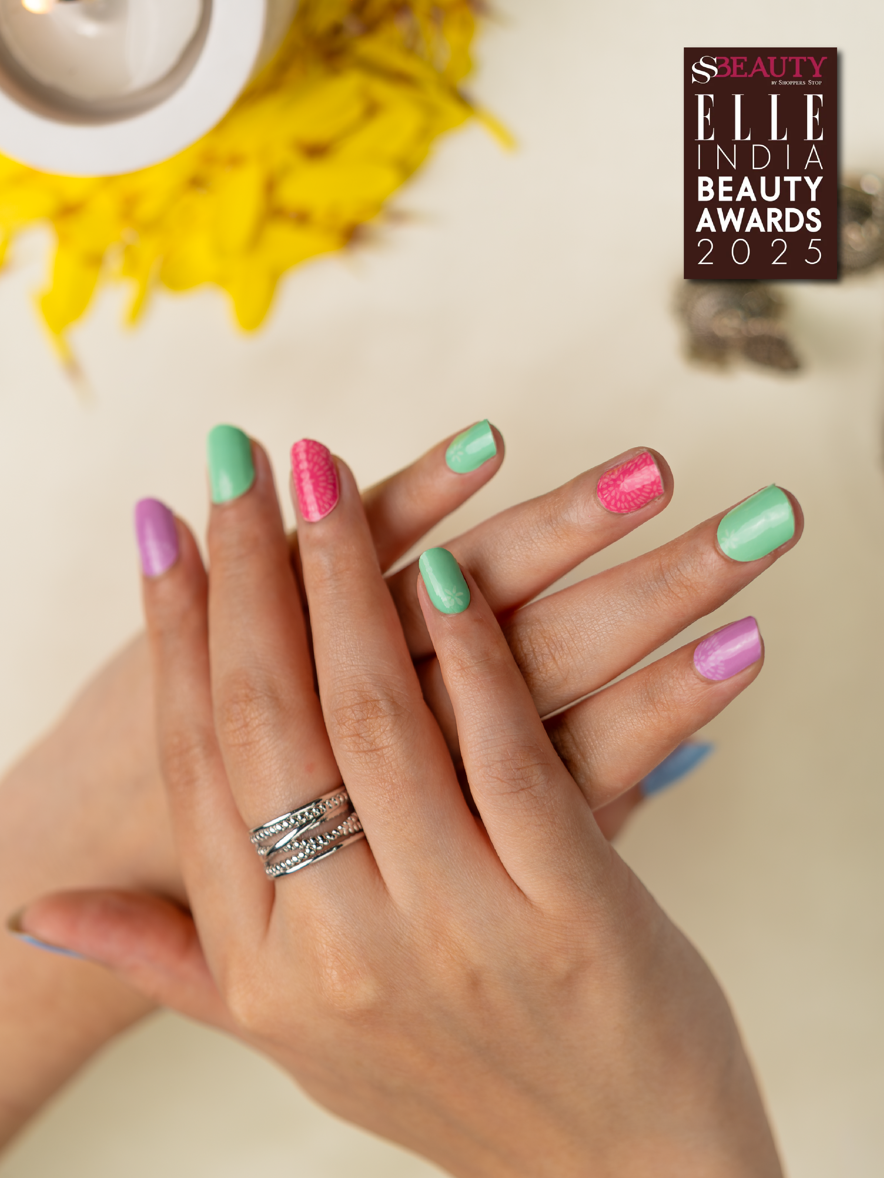 Why pick one color when you can have them all? Hide & Chic is a playful mix of bold shades with a twist, bringing color-blocked fun straight to your fingertips. Trendy, vibrant, and mood-lifting, it’s basically a party you get to wear every day.🎨