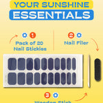 No special tools necessary! Just peel, stick, and smooth the nail stickies onto your nails. Use a nail file to shape them and get that perfect vibe. 💅✨