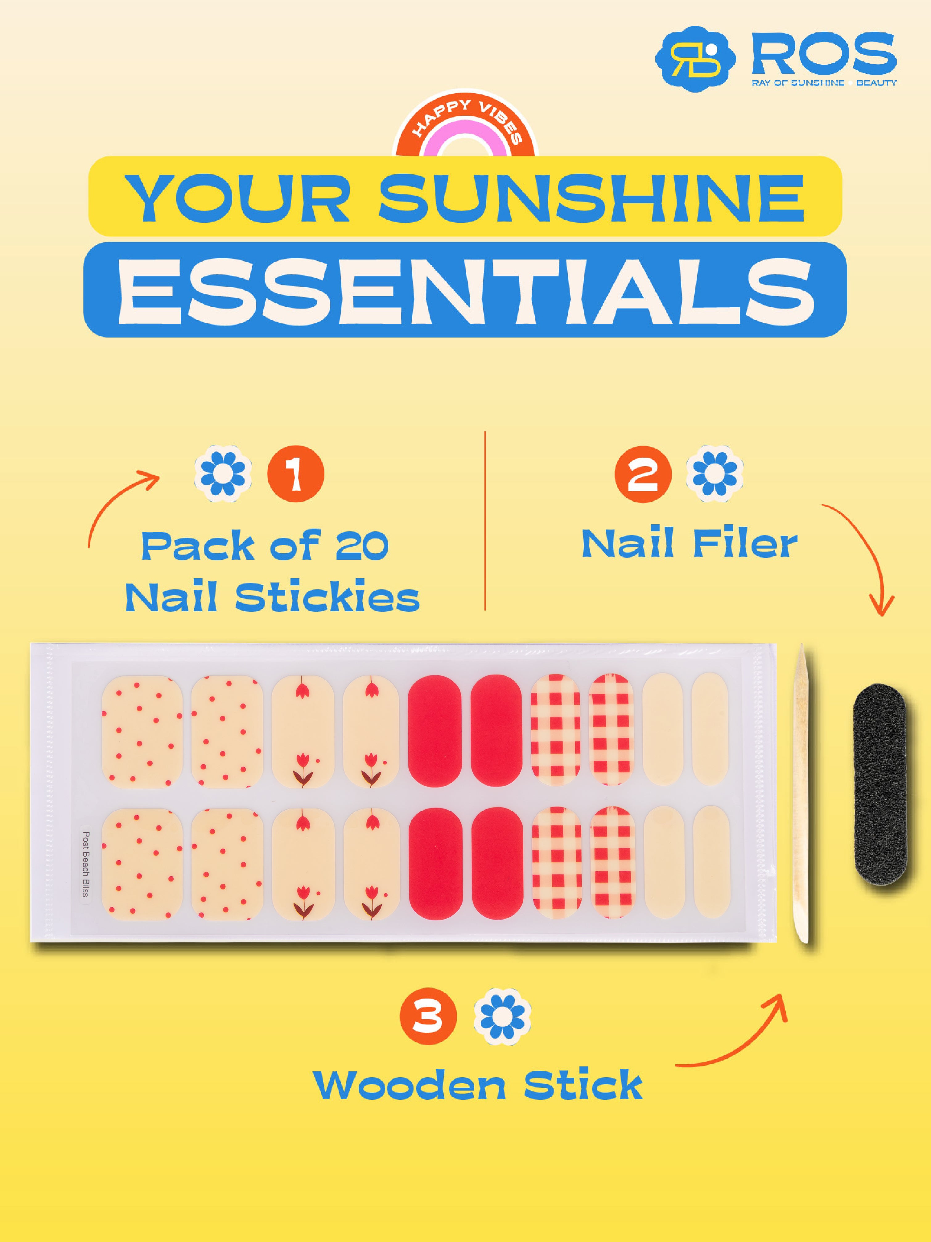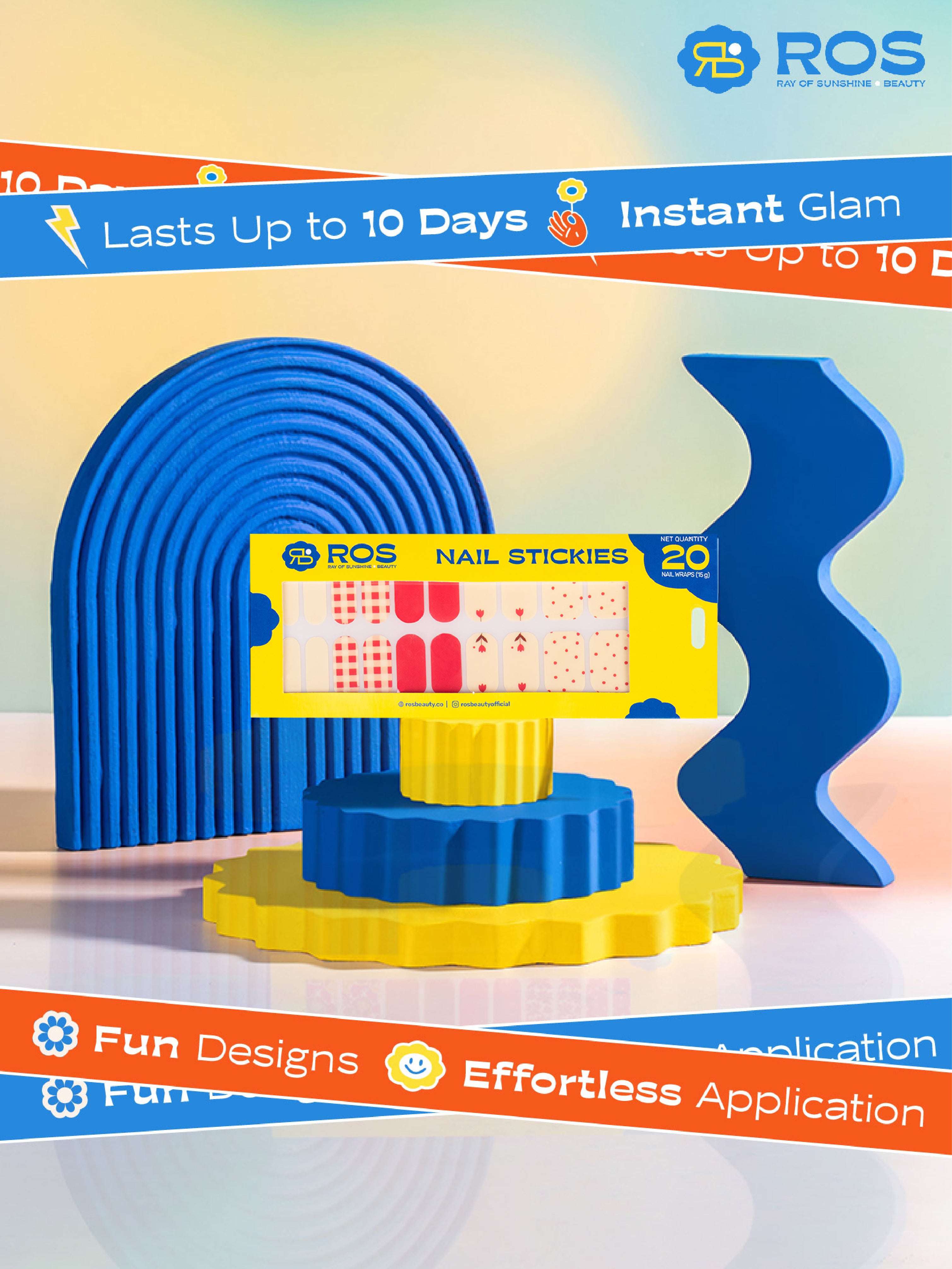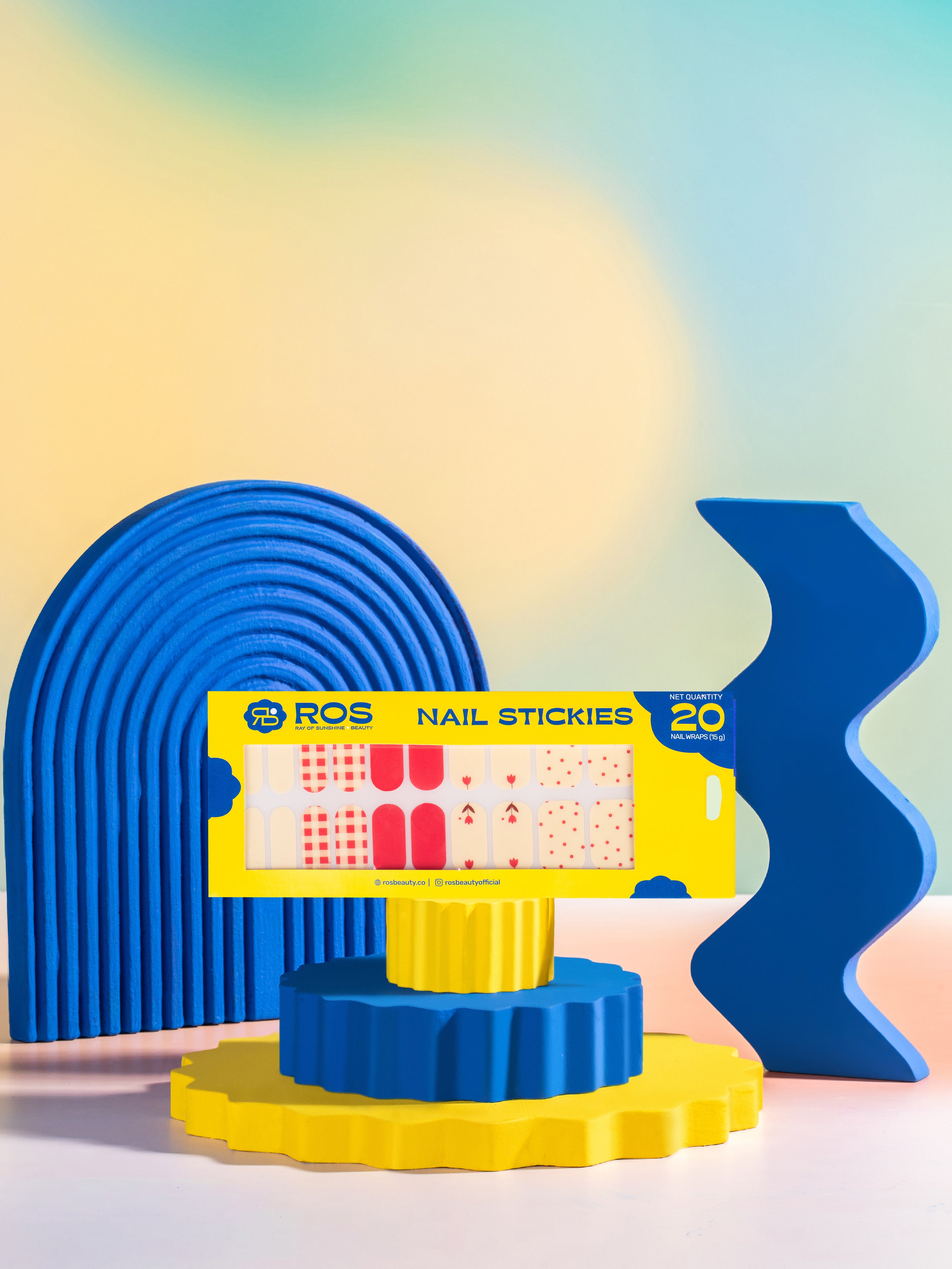 Nail stickies are our adhesive nail wraps that you can simply stick on to your nails for a quick and stylish manicure and give you the luxury of ZERO drying time! Perfect for getting a trendy manicure without the wait! βœ¨β˜€οΈ