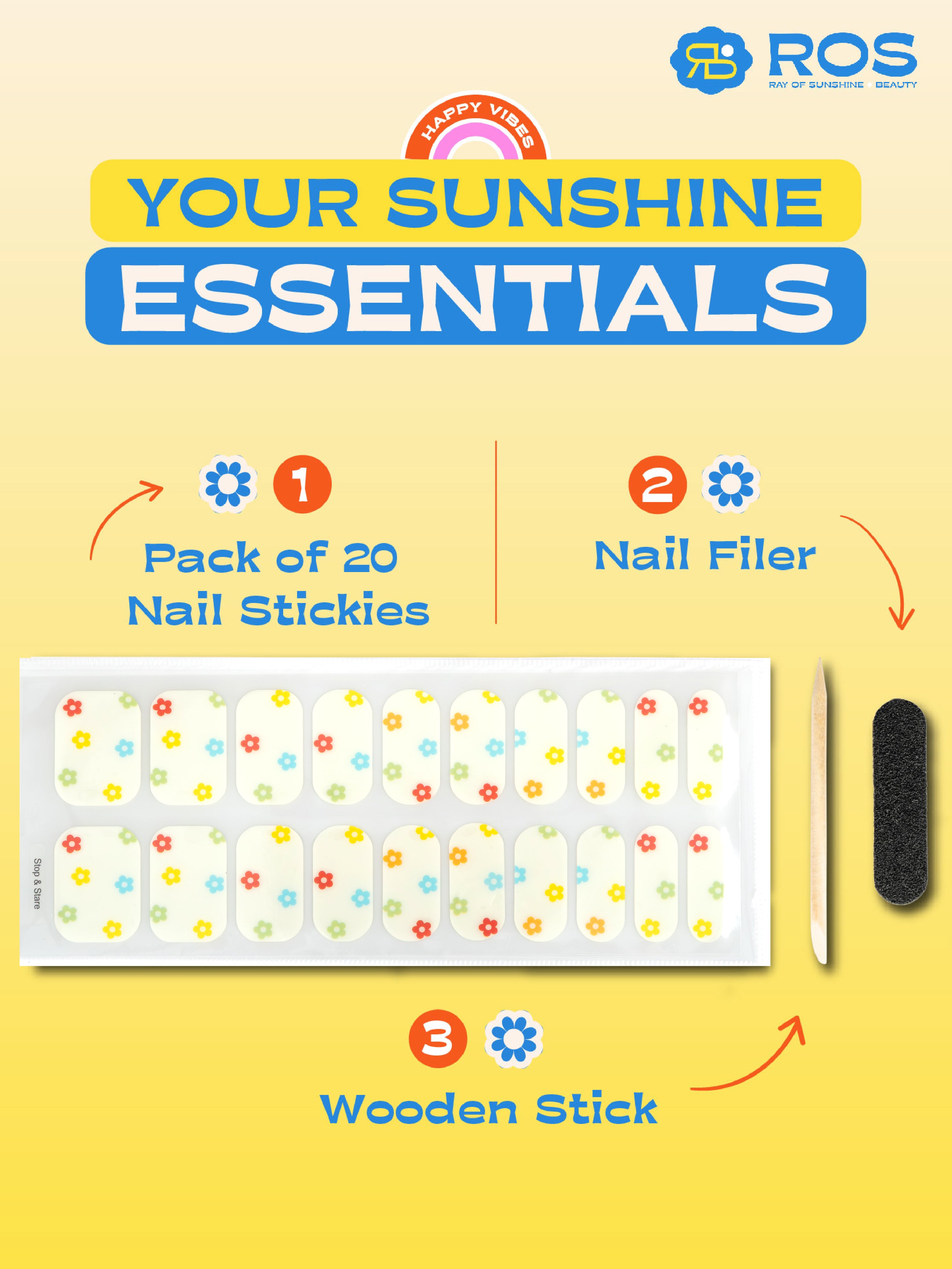 No special tools necessary! Just peel, stick, and smooth the nail stickies onto your nails. Use a nail file to shape them and get that perfect vibe. 💅✨
